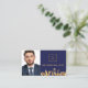 A classic navy blue background, with a faux gold city skyline as decor. Personalise and add your business, company logo, profile photo and a text on front. Golden letters