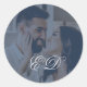 Navy Blue Classic Calligraphy Monogram Photo Round Sticker