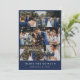Navy Blue Clean Wedding Photo Collage Thank You Card
