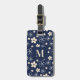 Navy blue cream flower pattern retro luggage tag