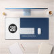 Create your own company workspace branded decoration with our ergonomic Navy Blue Business Company Logo Desk Mat. This stylish, modern and professional desk mat allows you to personalise your boss, coworker or employee office in a unique way. Add corporate logo, name, profession, website, slogan, social media or any personalised text. A basic and modern design in navy blue and white, with standard sans serif font, for a professional and clear look. Any font, any colour. No minimum order.
