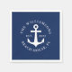 Unique nautical paper napkins with a navy blue and white design that feature a boat anchor and text templates. It's easy to personalise the design with your family name, year, state or another text.