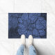 Welcome guests to your home with this rich navy blue floral doormat. This stylish decorative blue doormat features a stunning abstract floral design highlighting the beauty of the dahlia flower in a monochromatic colour palette. A bold bright cornflower blue dahlia is the macro focal point of this maximalist floral design, framed by two dark navy blue flowers on a patterned background of husk, navy and cornflower blue floral swirls; a layered design that gives depth of perspective with highlights and shadows.