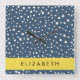 Navy Blue Dalmatian Dots, Spots, Dotted, Your Name Square Wall Clock