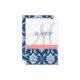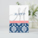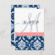 Navy Blue Damask Coral Initial Wedding RSVP Card