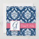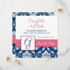 Navy Blue Damask Monogram G Save the Date Pink