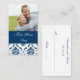 Navy Blue and White Damask with Enagement Photo Place Card . Add your engagement photo to the place cards and add our saying on the front. The back has a spot for the bride and groom and wedding date and space to handwrite the guest's name and table number. Need help? Contact luxuryweddinginvitations@gmail.com