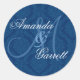 NAVY BLUE Damask Wedding Custom Monogram V2 Classic Round Sticker