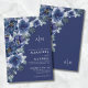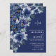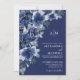 Navy Blue Dark Elegant Modern Floral Wedding Invitation