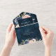 Navy Blue Dusty Blush Pink Floral Wedding All In One Invitation