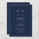 Navy Blue Elegant Border & Monogram Wedding Invitation