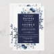 Navy Blue Elegant Floral All In One Wedding Invitation