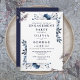 This elegant navy blue and white floral engagement party invitation can be personalised with your information in modern typography. Designed by Thisisnotme©