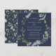Navy blue bohemian botanical modern elegant foliage stylish wedding invitation card. Beautiful handprinted dried botanical floral watercolors and script text. Modern on trend Navy blue and green design.