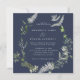 Navy blue elegant modern botanical script wedding invitation