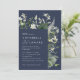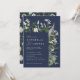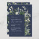 Navy blue elegant modern botanical script wedding invitation
