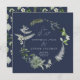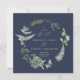 Navy blue bohemian botanical modern elegant foliage stylish wedding save the date invitation card. Beautiful handprinted dried botanical floral watercolors and script text. Modern on trend Navy blue and green design.