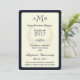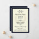 This formal elegant graduation announcement features a navy blue border and monogram initials at the top. The ornate calligraphy style embellishment in the centre and laurel watermark gives it a touch of class. Personalise these announcements with your graduation information. There is also plenty of room on the back for more information. This design works best with the rounded corners, for rectangle or square please see the following: