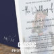 This design features a navy blue wedding invitation with an elegant photo template, a modern minimalist, calligraphy script, simple typography design, with classic traditional, monogram ampersand, with a photo overlay, a classy contemporary, wedding stationery design.