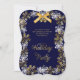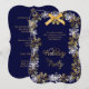 Navy Blue Elegant Snowflake Corporate Holiday party invitations feature a background of navy blue with gold text, gold and silver snowflakes, and a gold bow with two jingle bells. It's easy to add your holiday event information to this beautiful and elegant navy blue, gold, and silver holiday party invitation before ordering. Whether it's for a small business with ten guests or a big corporation annual holiday party for a thousand, this pretty holiday party invitation suits your needs!