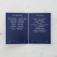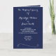Elegant navy blue wedding programs with changeable white text and decorative graphics