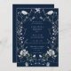 Navy Blue Elegant Winter Wildflowers Wedding Invitation