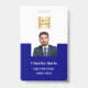 A navy blue and white gradient background. Add your photo, title, company logo,