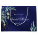 Navy blue eucalyptus greenery bridal shower large gift bag