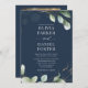 Navy Blue Eucalyptus QR Code Photo Wedding Invitation