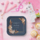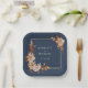 Navy Blue Fall Paper Plate. Make a bold statement at your reception with these square paper plates, matching the "Navy Blue & Terracotta Fall Wedding Invitation Collection." Featuring hand-painted autumn florals in warm terracotta and burnt orange hues, these plates bring sophistication to casual dining. The deep navy blue backdrop provides a striking contrast, ensuring even your table settings reflect the beauty of your fall wedding. Delight your guests with thoughtful and stylish details.