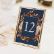 Navy Blue Fall Table Numbers. Add a touch of elegance to your reception tables with the Wedding Number cards from the "Fall Navy Blue Terracotta Floral and Leaves Wedding Invitation Collection." These beautifully designed cards feature the stunning autumn-themed floral and leaves pattern, making it easy for guests to locate their tables while enhancing the overall decor. Elevate your table settings and ensure a cohesive look for your wedding celebration.