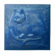 Navy Blue faux relief Art Nouveau Cat Ceramic Tile