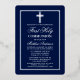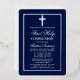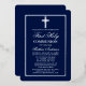 Elegant Navy Blue and Gold First Holy Communion Invitation with Cross. Silver Foil Frame. Silver Foil Cross. Rounded Edges.