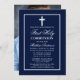 Elegant Navy Blue First Holy Communion Invitation with Cross. White Frame. Photo Back.