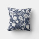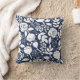 Navy blue and white floral pattern 2 faces throw pillow.