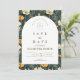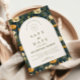 A rich and sophisticated floral design featuring deep navy tones accented with warm golden blooms, framed within a timeless arched layout. The contrast between the dark background and soft ivory center creates a striking, high-end aesthetic that feels both modern and classic.