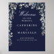 Navy Blue Floral Cascade Wedding Welcome Sign