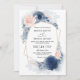 Navy Blue Floral Dusty Budget QR Code Wedding Invitation