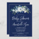 Navy Blue Floral Elegant Modern Boy Baby Shower Invitation