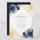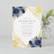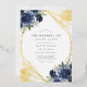 Navy Blue Floral Gold Geometric Modern Wedding Foil Invitation. This custom modern wedding design can easily be personalised with your own wedding details.