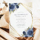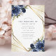 Navy Blue Floral Gold Geometric Modern Wedding Invitation