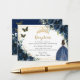 Navy Blue Floral Gold Quinceañera Reception Enclosure Card