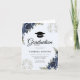 Navy Blue Floral Graduation Graduation Cap Party Invitation