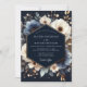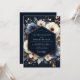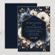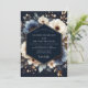This enchanting design features a rich palette of deep navy blue, creamy ivory, and hints of subtle blush tones. Lush botanical elements and delicate blooms evoke a romantic and sophisticated atmosphere, perfect for a memorable occasion.