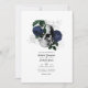 Navy Blue Floral Skull Gothic Wedding Invitation