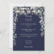 Navy Blue Floral String Lights Photo Wedding Invitation