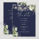 This elegant navy blue greenery floral string lights save-the-date invitation can be personalized with your information in chic typography, with your wedding website QR code and details on the reverse. Designed by Thisisnotme©