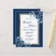 On front: A navy blue background with a faux simple gold and white frame. Decorated with blue flowers, roses. Templates for the bride to be's name and party details. The name and text: Bridal Shower are written with a hand lettered style script, blue coloured letters.