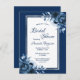 Navy blue florals silver bridal shower invitation postcard