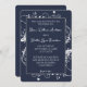 Set the tone for a timeless celebration with this Navy Blue Flourish Wedding Invitation. Featuring graceful white flourishes, delicate white botanical elements, and flowing white leaves, this design evokes a soft, feminine aesthetic perfect for romantic weddings. Elegant script pairs beautifully with modern typography to highlight the names of the bride and groom and essential wedding details. Ideal for garden-inspired or classic themes, this invitation brings effortless sophistication to your special day.